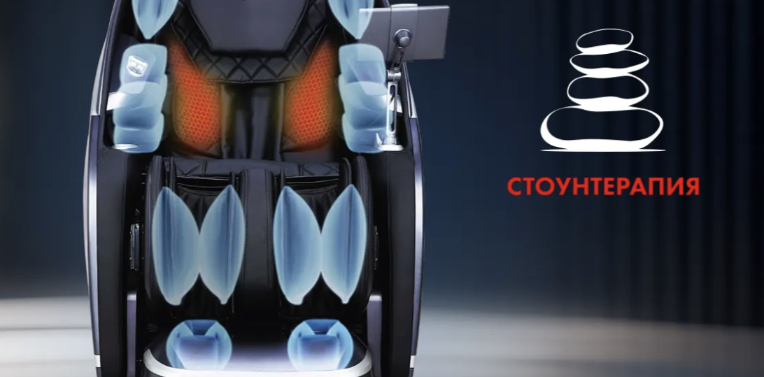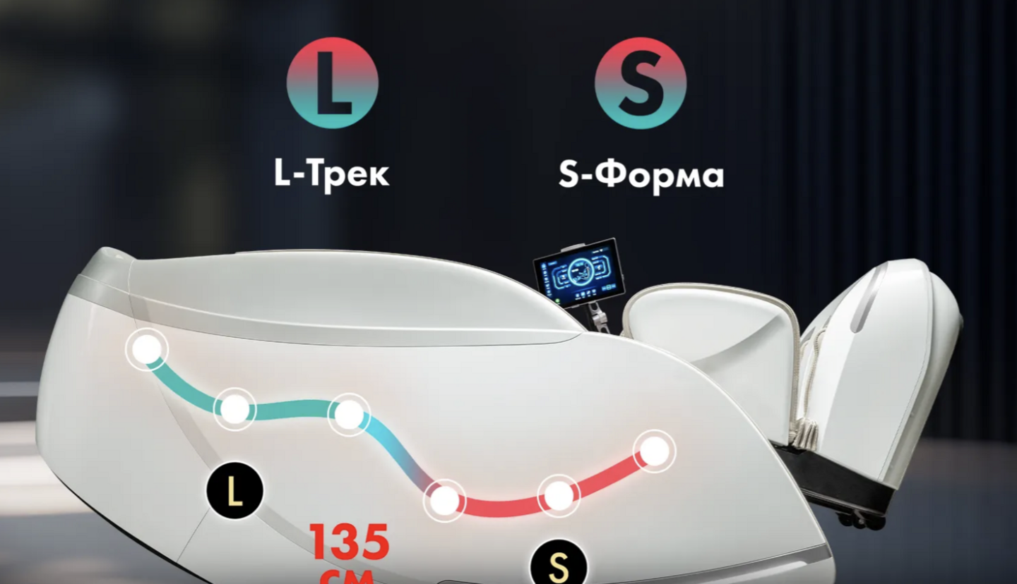 Инновационная супердлинная каретка (135 см) охватывает все тело, устраняя «слепые зоны». Механизм выдвигается на 11 см, прорабатывая глубокие мышцы для полного расслабления. Подходит для роста 150-190 см. Угол наклона кресла – более 120 градусов.